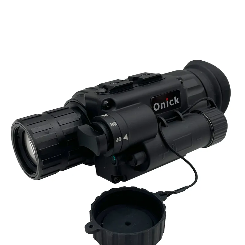Onick Owl Anti-theft hunting professional low-light night vision NVG-S adopts a high-performance second-generation image intensifier with excellent performance, small size, light weight, clear imaging, simple operation and high cost performance. The magnification can be changed by changing the objective lens (or connecting the magnification lens). NVG-S can be connected with digital cameras, cameras, camcorders, (built-in division) with gun sight clamp can be used to hang the gun, or can be used alone. The night vision device has built-in infrared auxiliary light source and automatic anti-glare protection system. Practical, suitable for individual combat, helmet can assist night walking, night driving and so on. Monocular design allows users to have a strong global control ability in the dark, and better respond to emergencies. It is widely used in military observation, border and coastal defense investigation, public security inspection, surveillance, customs anti-drug, anti-smuggling, navigation and other dark environments.